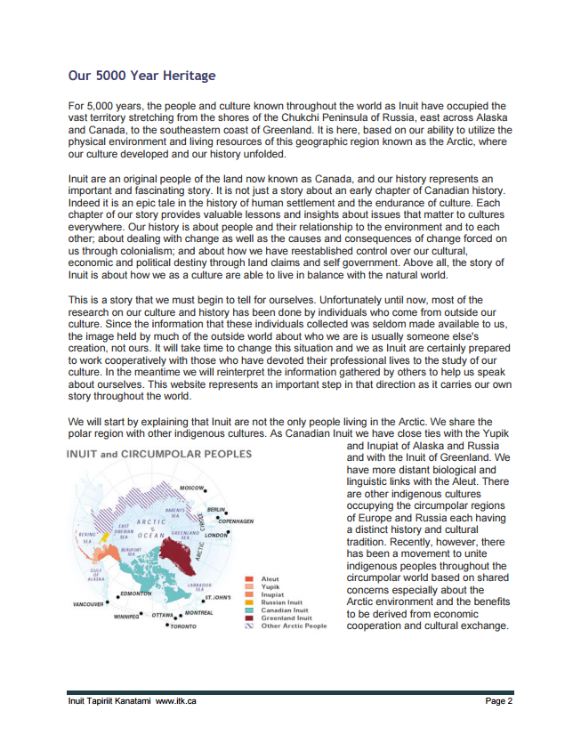 5000 Years of Inuit History and Heritage By Kelly PatrickPublications The attached document contains information on the last five thousand years of Inuit history. The following information is covered: Culture...Read More November 4, 2004 Love1
