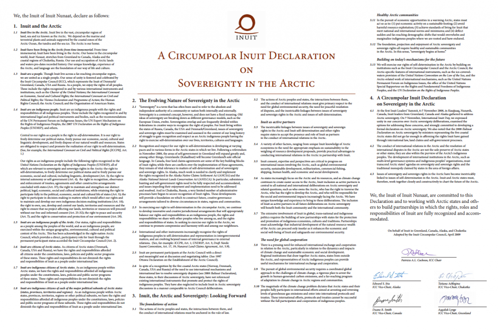 Circumpolar Declaration on Sovereignty in the Arctic By Kelly PatrickPublications The Circumpolar Declaration on Sovereignty in the Arctic developed by the Inuit Circumpolar Council (ICC). Downloads Circumpolar Declaration on Soverignty...Read More October 6, 2009 Love1