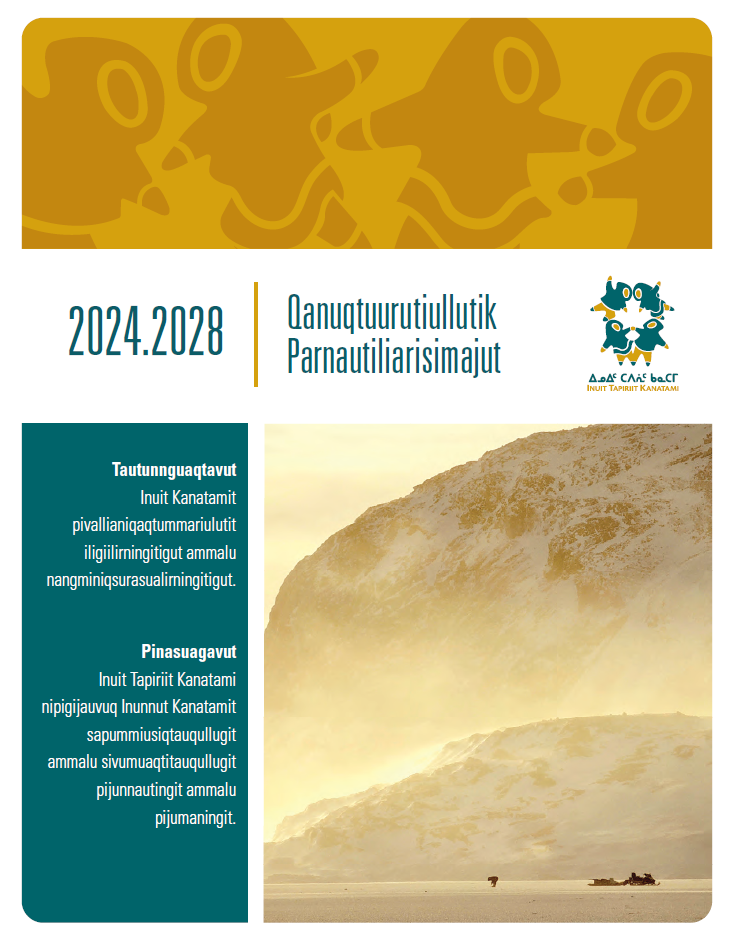 Inuit Tapiriit Kanatami 2024-2028 Qanuqtuurutiliangusimallutik Parnautingit ikajurutiksarijauvut katujjiqatigiingujunut piliriaksarijauniaqtunik ukiut sitamat (4) atuqpallianinginni. Taakkua parnautiit pimmariutiullutik sapujjigiaqtiunirmi sanarrutiksarijauvut Inuit katinniqaqsimalutik ammalu amiqqarutiqarunnaqullugit sivulliqpautitauqujaminnik.