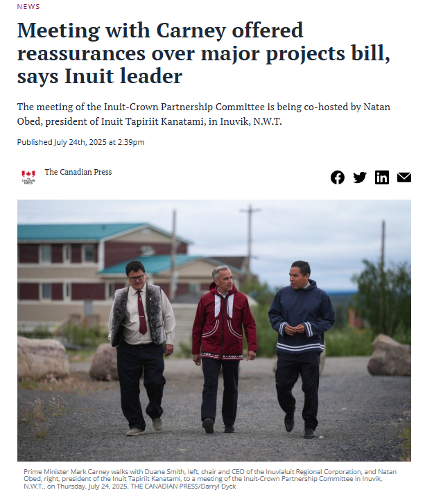 Inuit Tapiriit Kanatami President Natan Obed shares with CBC’s As It Happens that Prime Minister Mark Carney has reassured him the government will consult Indigenous communities about projects governed by the controversial “Building Canada Act.”