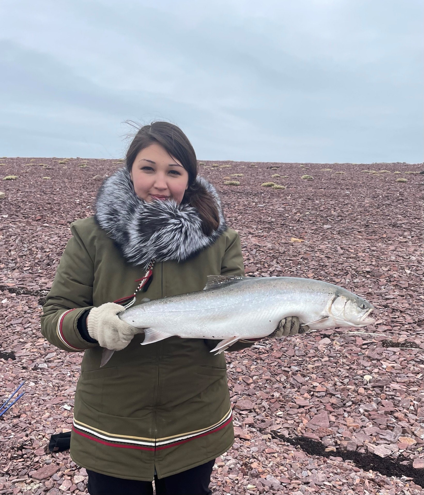 Tasha Tologanak fishing for Arctic Char near Cambridge Bay. © Tasha Tologanak