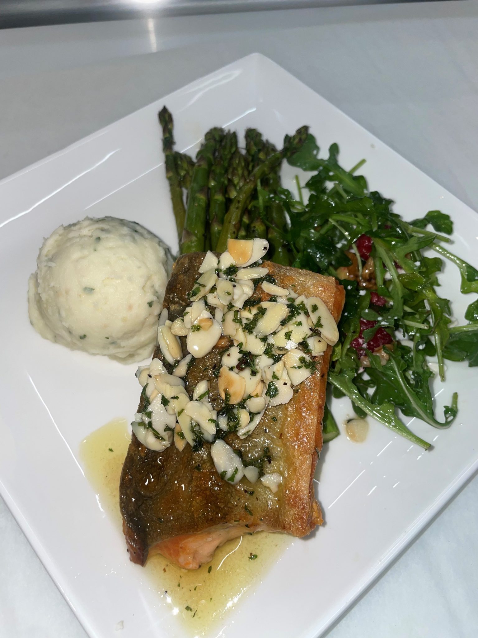 Crispy Arctic char with Honey-Lemon Butter Sauce