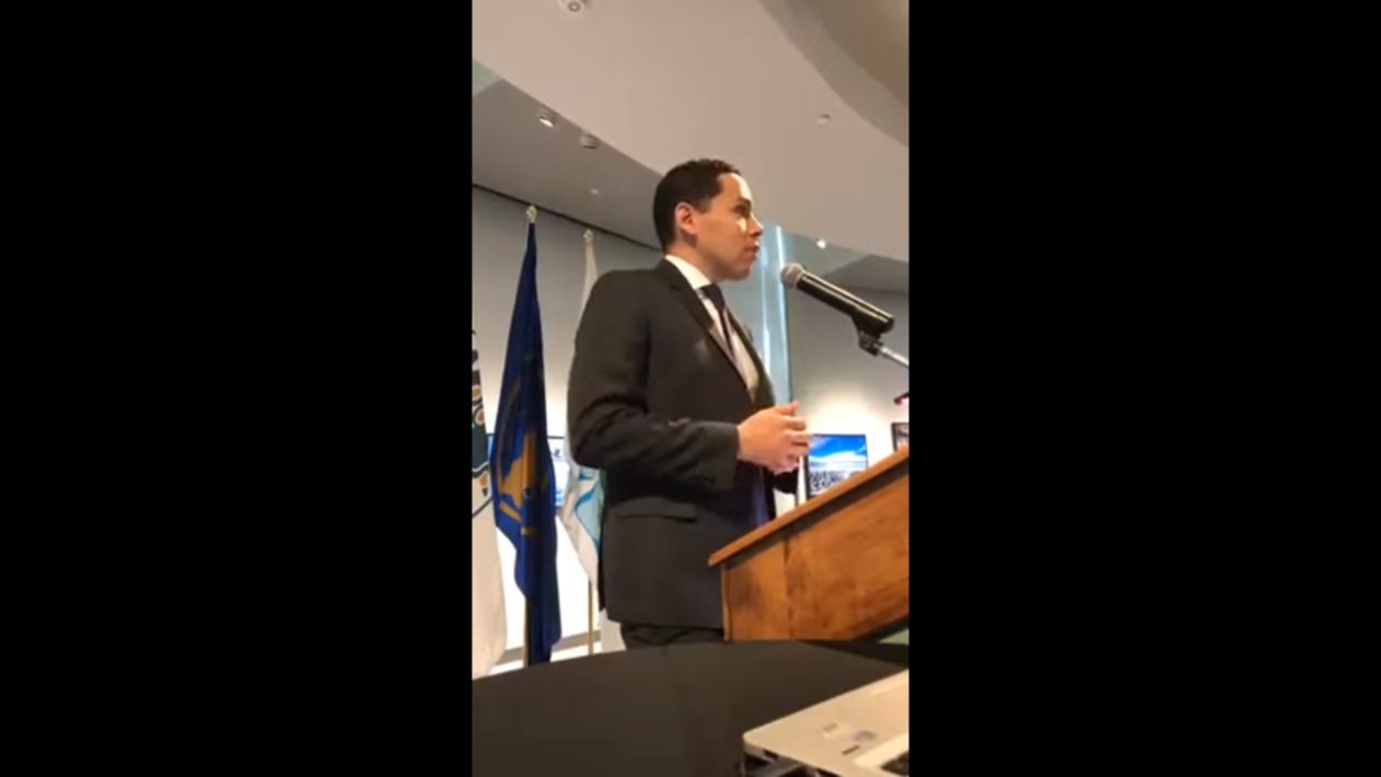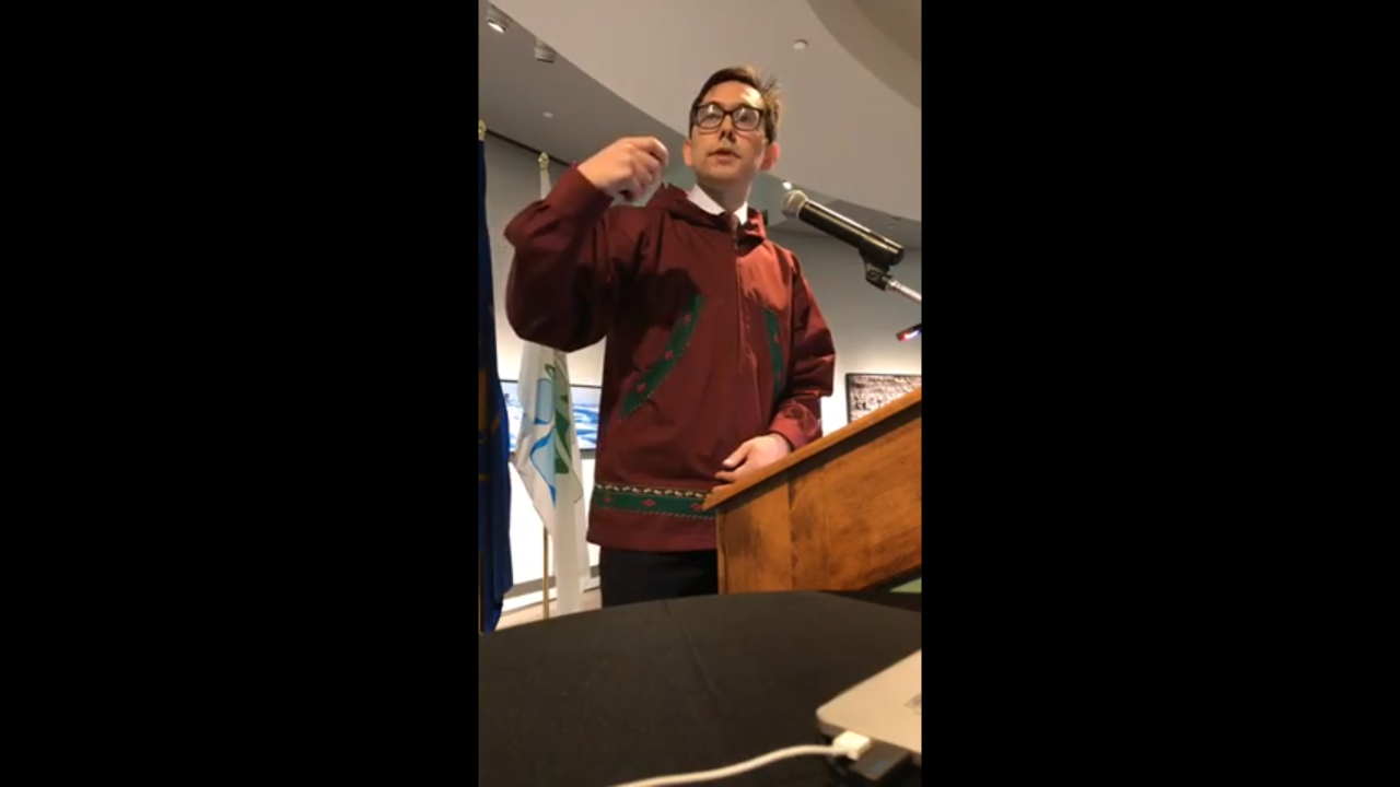 The president of Inuit Tapiriit Kanatami, speaks at the Canadian Museum of Nature in Ottawa on March 22 at the launch of the National Inuit Strategy on Research along with Minister of Crown-Indigenous Relations and Northern Affairs Carolyn Bennett.