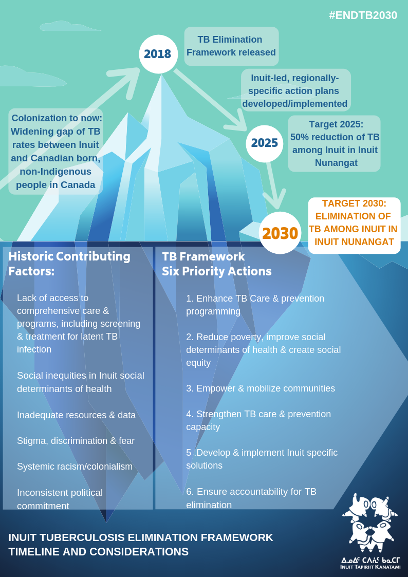 In 2013, Inuit Tapiriit Kanatami (ITK) developed the Inuit-specific Tuberculosis Strategy to increase awareness of the need for more effective approaches to TB prevention, control and care, and to present a path forward for reducing the rate of active TB in Inuit Nunangat.