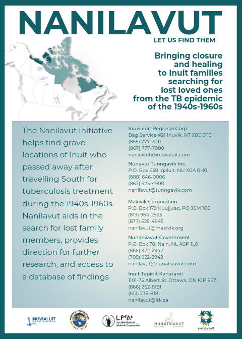 - The Government of Canada has been collaborating with Inuit partners on the Nanilavut Initiative, which will provide family members with information on loved ones who passed away while undergoing medical treatment for tuberculosis between the 1940s and the 1960s.