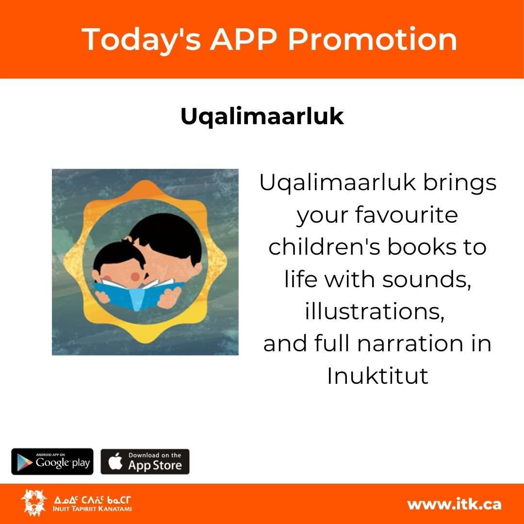 | Uqalimaarluk | Uqalimaarluk brings your favourite children’s books to life, with sounds, illustrations, and full narration in Inuktitut. | Download on the App Store for iPad and iPhone | Download on Google Play for Android |